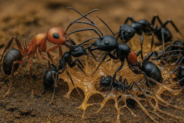 Autothysis is a remarkable act of self-sacrifice seen in some social insects like ants and termites, where individuals explode to defend their colony. These creatures trigger a bodily rupture, often causing special glands to release defensive chemicals that entangle, repel, or kill attackers. These behaviours are not random. They generally involve specialized glands, such as enlarged mandibular glands (associated with the lower jaw) in some species, or modified salivary glands in others. They also involve precise muscular contractions and behaviours triggered by specific threats.